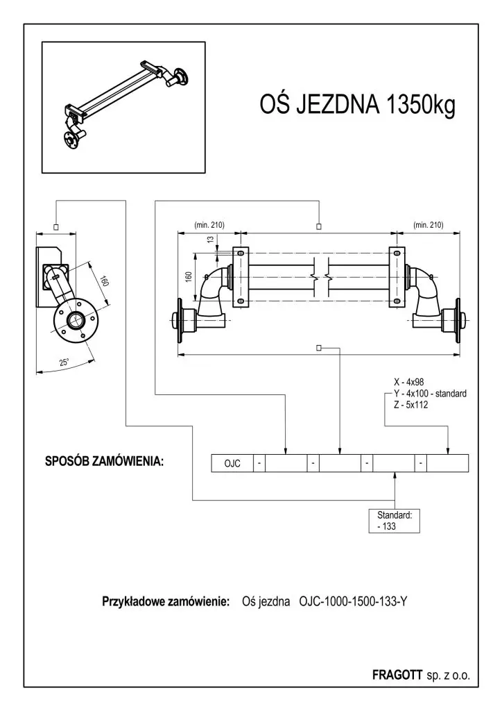Jeśli potrzebujesz wymiarów niestandardowych dla osi dla przyczep niehamowanych o DMC do 1350 kg złóż zamówienie na dwa sposoby: