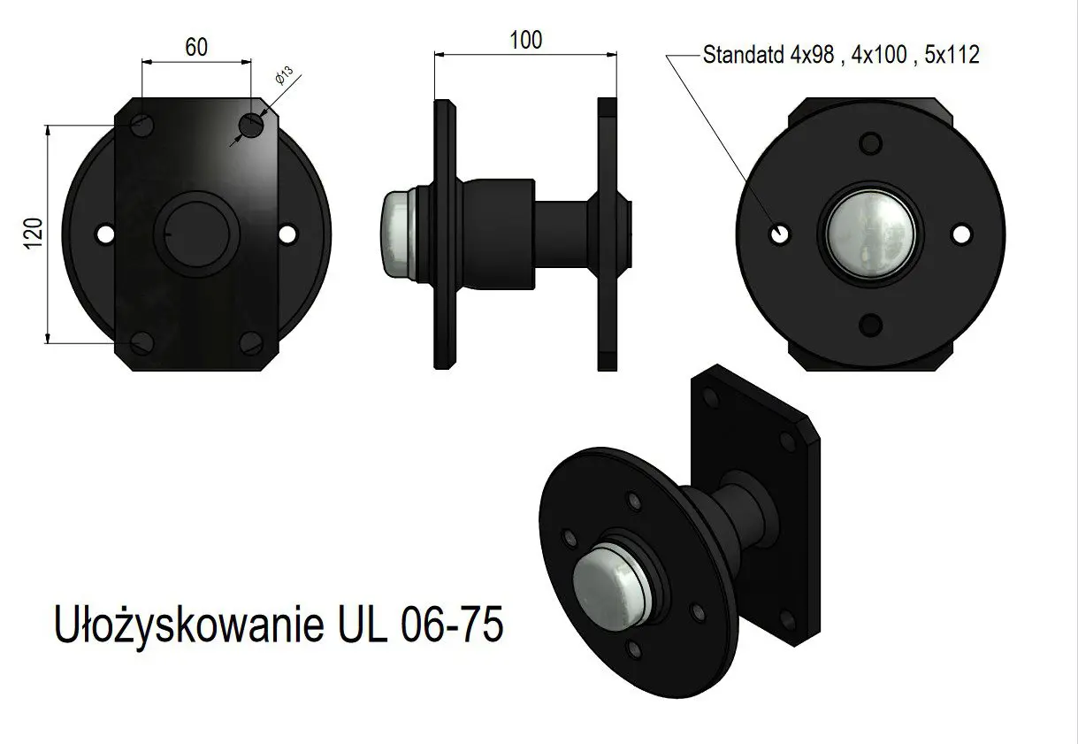 Ułożyskowanie UL6 750kg 4×100