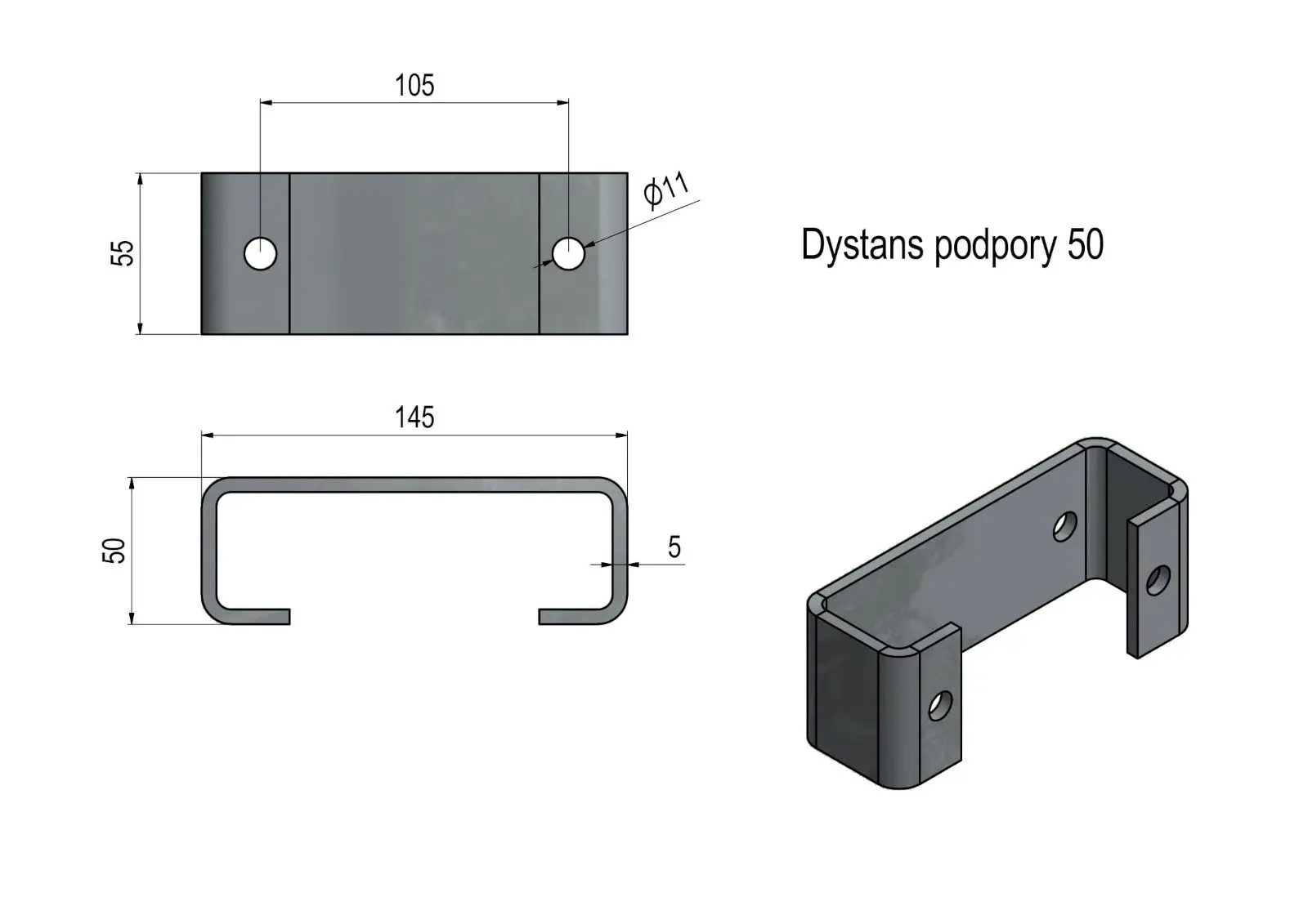 Dystans podpory DS50 pozwala na mocowanie obejmy podpory koła w odległości 50mm od ramy przyczepy, gdy nie ma możliwości manewrowania kołem podporowym lub rurą podporową lub gdy znajdują się one np. za blisko przy burcie. Istnieje możliwość wykonania dystansu wg innych wymiarów.