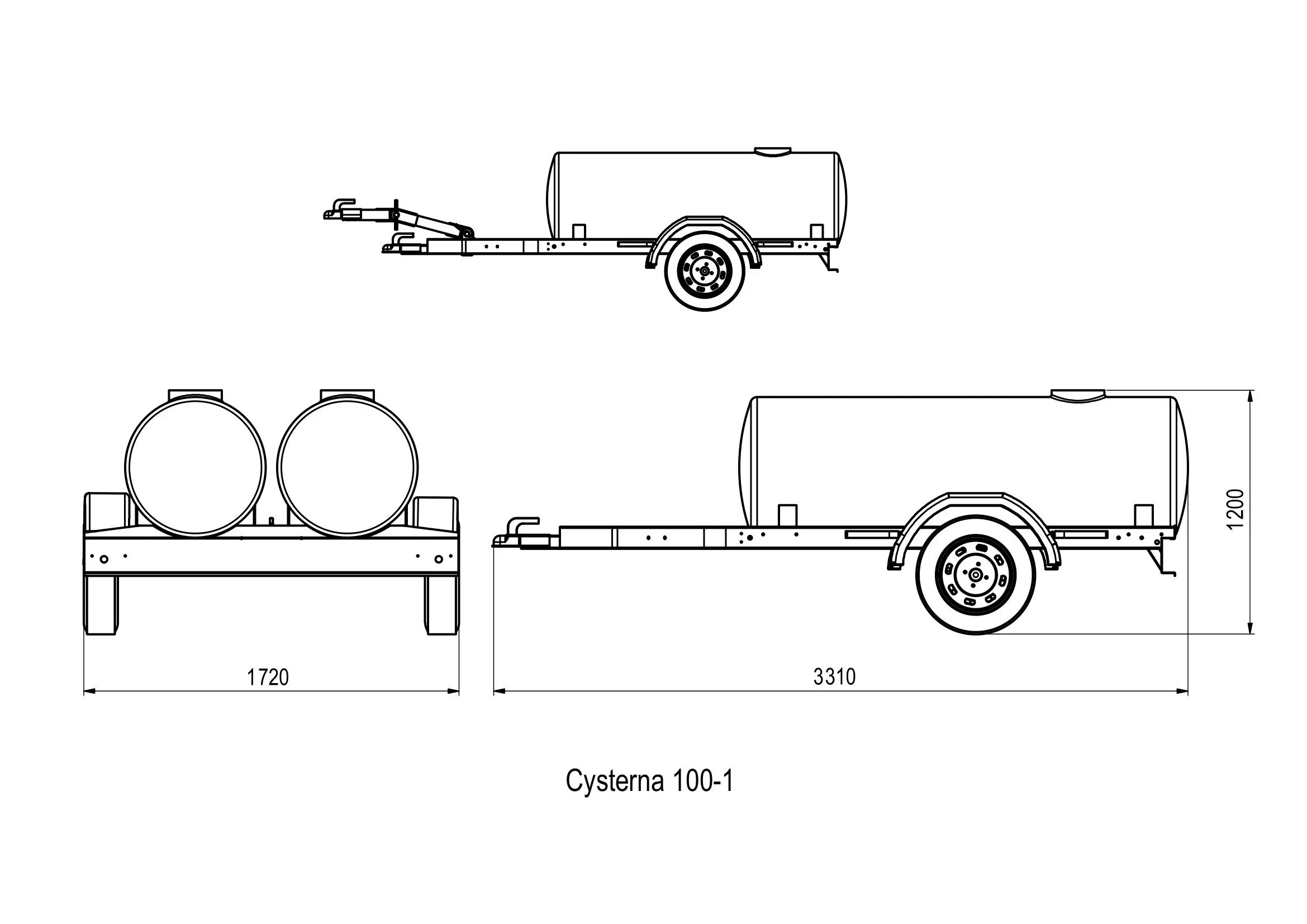 Przyczepa-cysterna 100-1 niehamowana, 1 oś