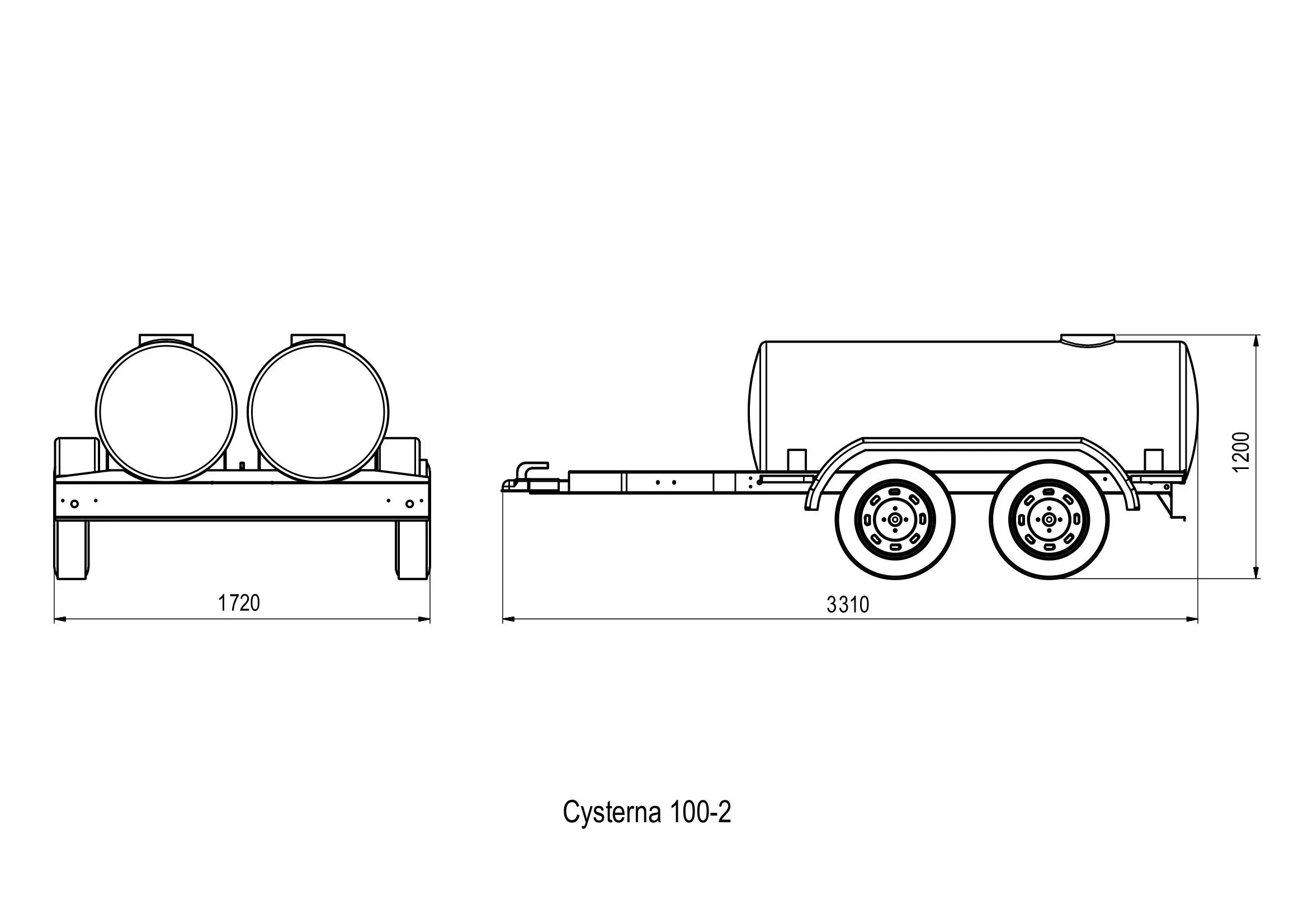 Przyczepa-cysterna 100-2 niehamowana, 2 osie