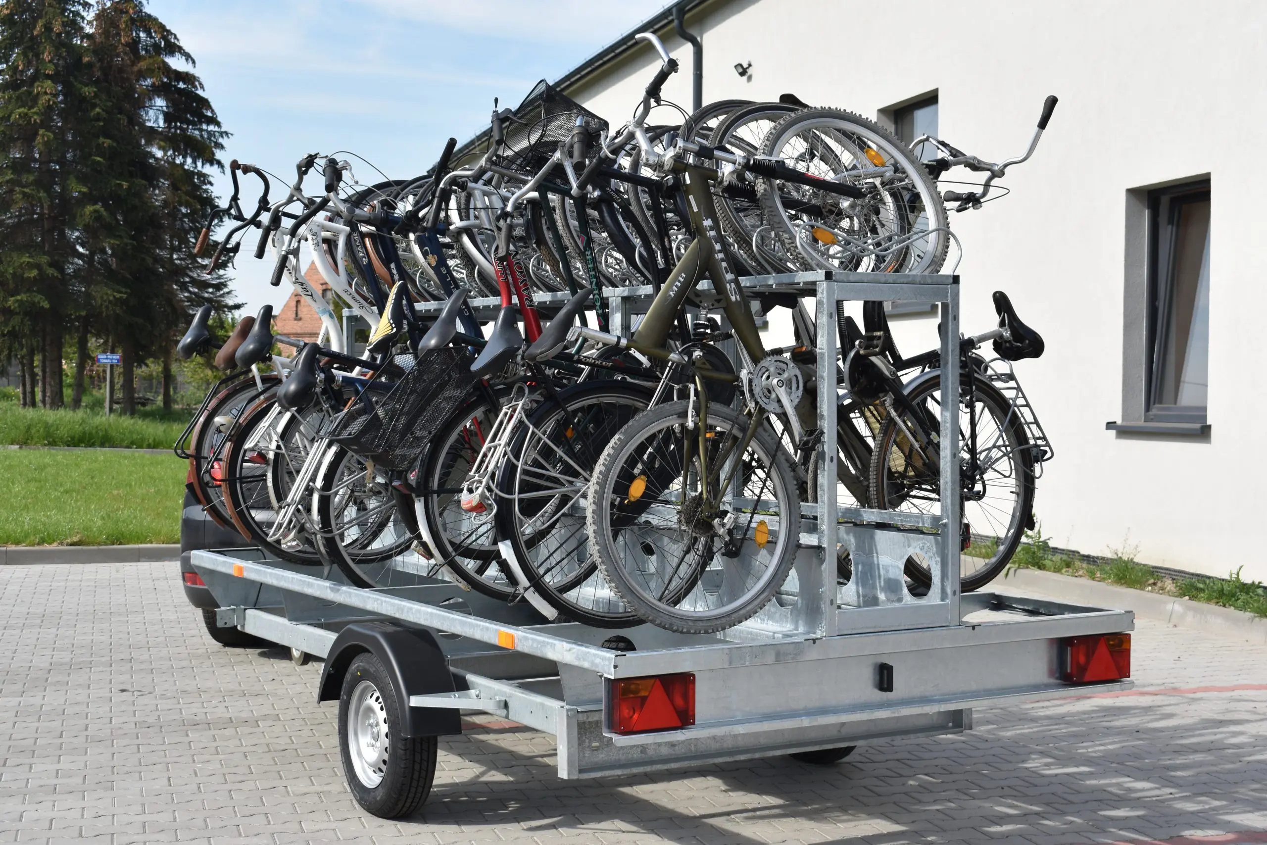Doskonale dostosowana przyczepa do przewozu nawet 15 rowerów, 2-osiowa, hamowana.
